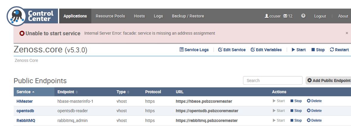 | Subject: | Internal Server Error: facade: service is missing an address assignment |